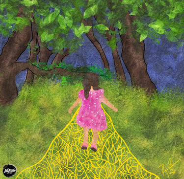 It was so amazing! The spiders were spinning webs made of golden threads and there was a PATH made of these golden webs from my window sill. I was so curious to see where this would take me.