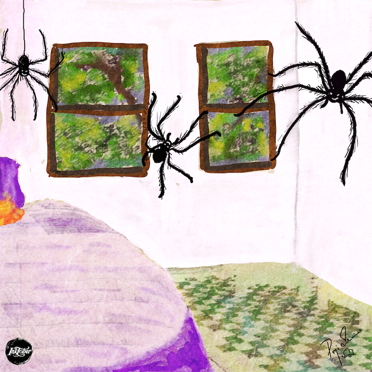 In my dream, I woke up suddenly and saw these enormous SPIDERS in my room. I was so scared at first! But they had friendly faces so I crept over to the window sill to see what they were doing.