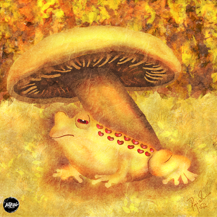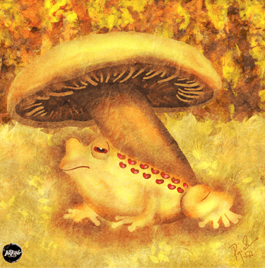 Just as I was looking around to see if anyone else was around, I noticed a large TOAD under a golden mushroom. He looked sleepy and wise. Maybe he can tell me the way back home.
