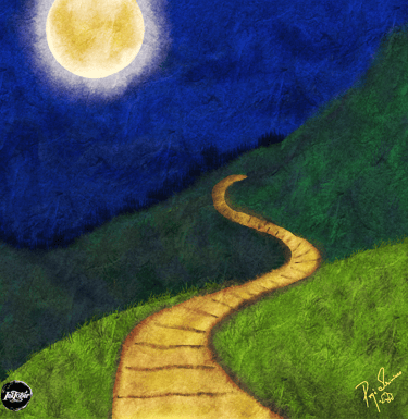 I grabbed the sandwich and went outside. As I saw the moon RISE over the sky, I noticed a path leading up a hill. I started walking up the path. Maybe I can see my house from the top?