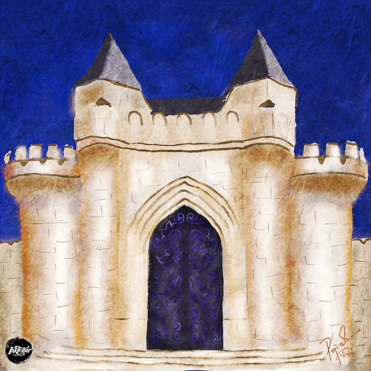 At the end of the path, I saw an enormous CASTLE. It was twinkling in the moonlight and looked so beautiful. I thought I would find someone there who can take me back home. I went over and knocked at the large door.