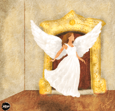 I entered the castle and saw a large corridor leading up to two doors. As I walked up to the end, I saw a beautiful ANGEL next to one of the doors. She looked so happy to see me.